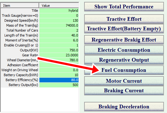 Click "Tractive Effort (Battery Empty" button and input data.
