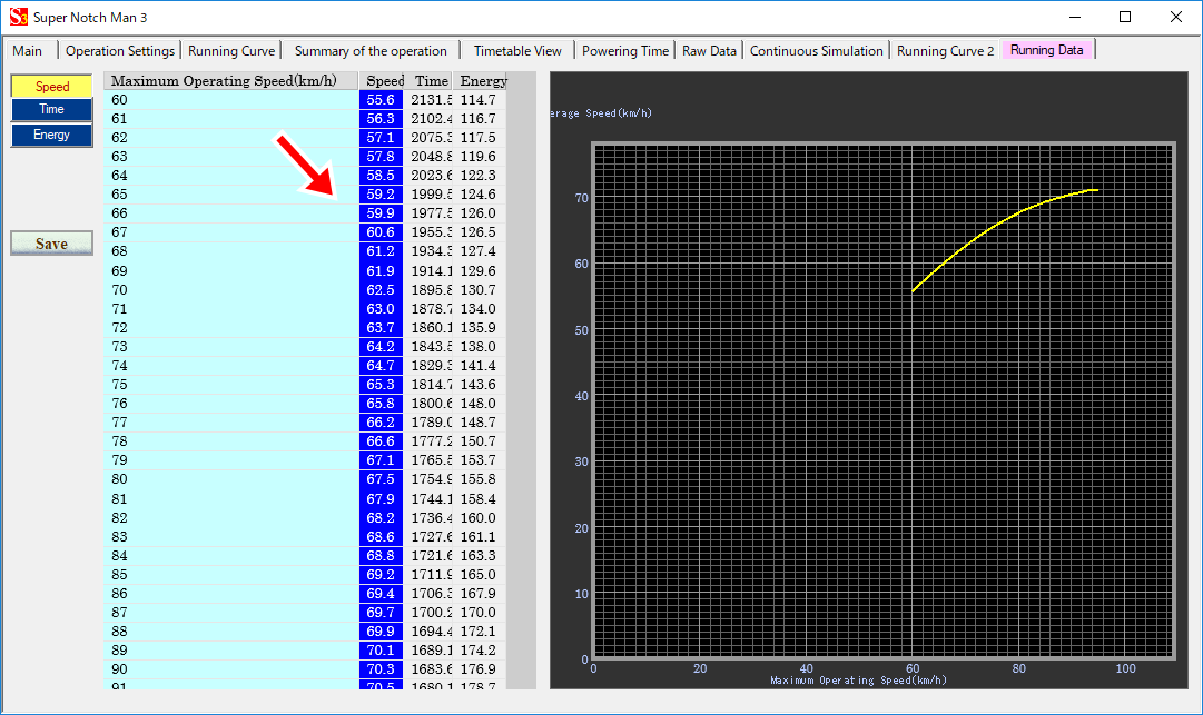 Click the column titled "Speed", "Time" and "Energy" and then the graph at the right side changes.